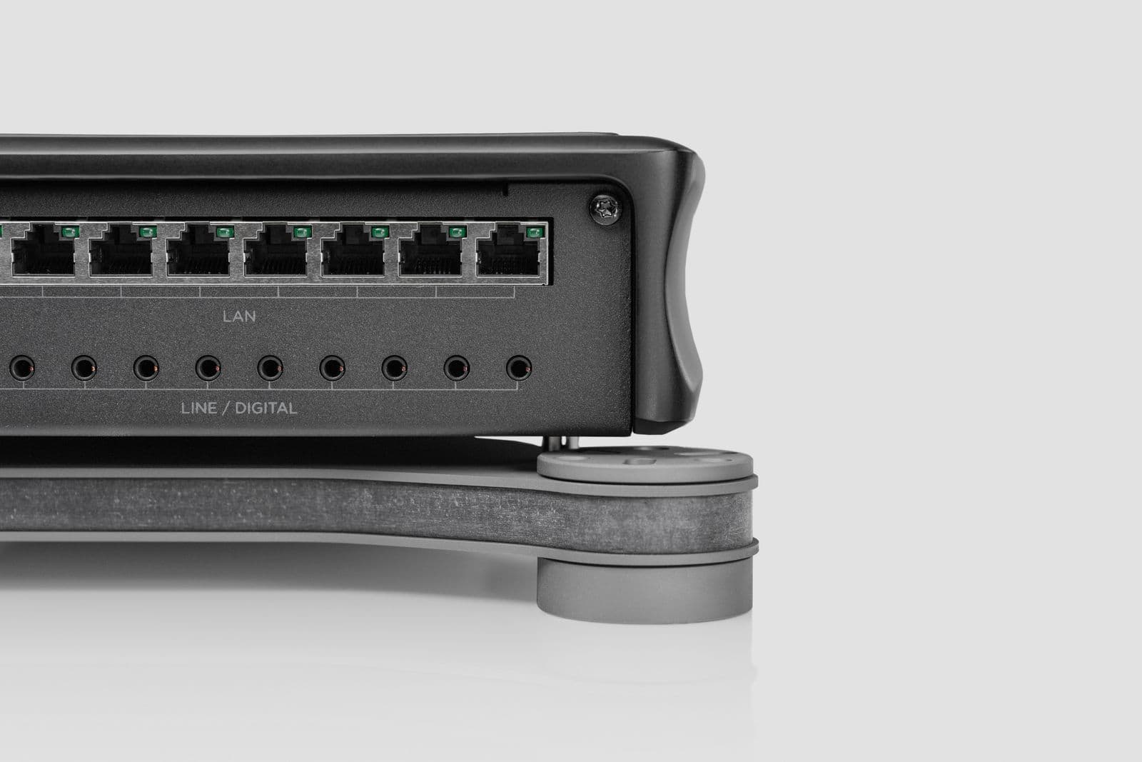 The cabinet design is an important Ansuz characteristic and is design to eliminates sonic distortion. The disturbing sonic influence, which emanates from the material the cabinet is made of – mostly aluminium – results from its mechanical resonance. To eliminate this sonic distortion, the challenge was to minimize the use of aluminium in the cabinet. Ansuz’s sister company Aavik began testing various materials and designed an innovative natural-based composite material, which reduces the mechanical influence, particularly the hysteresis. The sonic result is distinctly audible and reflects a further prominent cornerstone in Ansuz’s quest for the ultimate music experience.