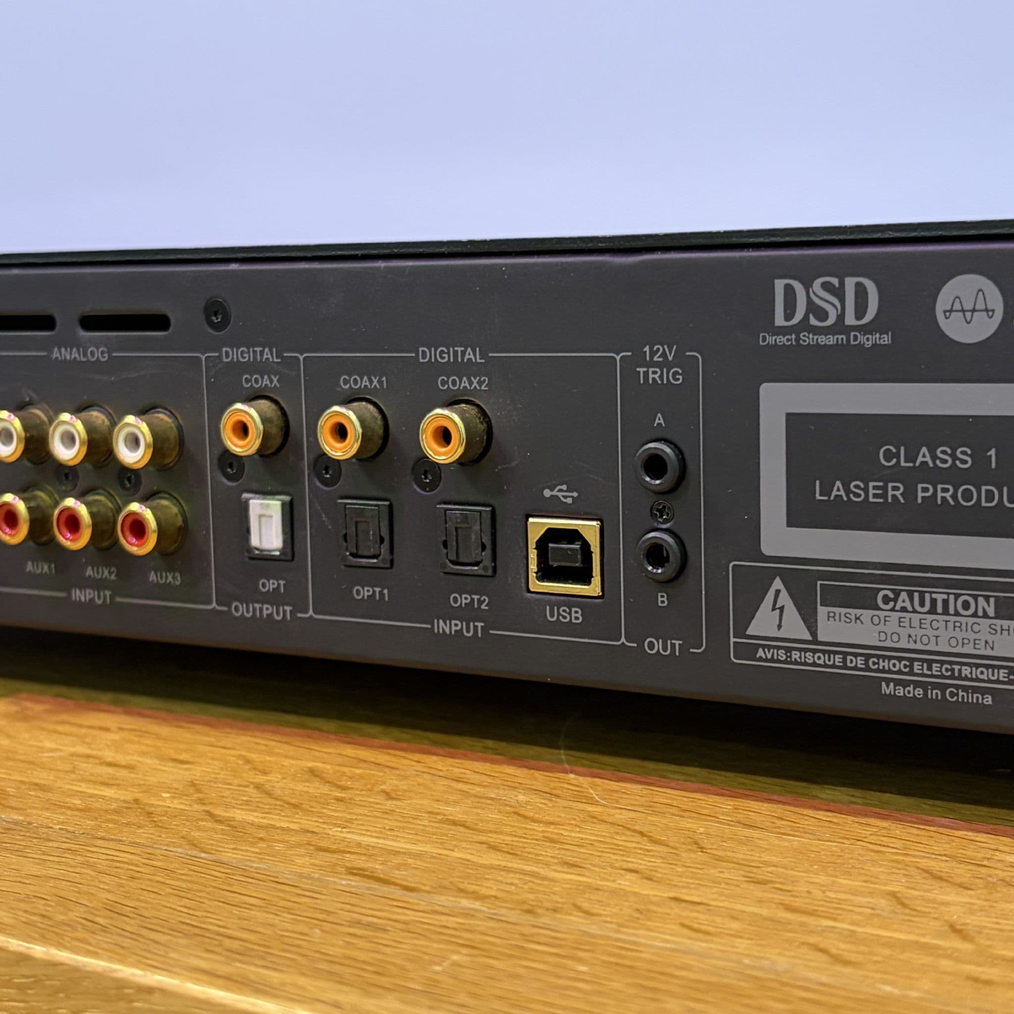 Five digital inputs comprise 1x asynchronous USB and 4x S/PDIF (2x coaxial and 2x optical). Hi-res digital audio is supported up to 32-bit/384kHz PCM and DSD256, and USB HID compatibility enables driverless control of a connected PC, Mac or media player.