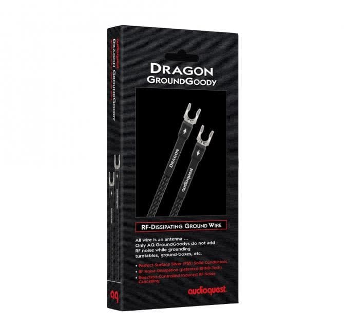 The Audioquest Dragon GroundGoody Ground Cable features Solid Perfect-Surface Silver (PSS) Conductors, significantly enhancing its ability to efficiently dissipate RF noise.