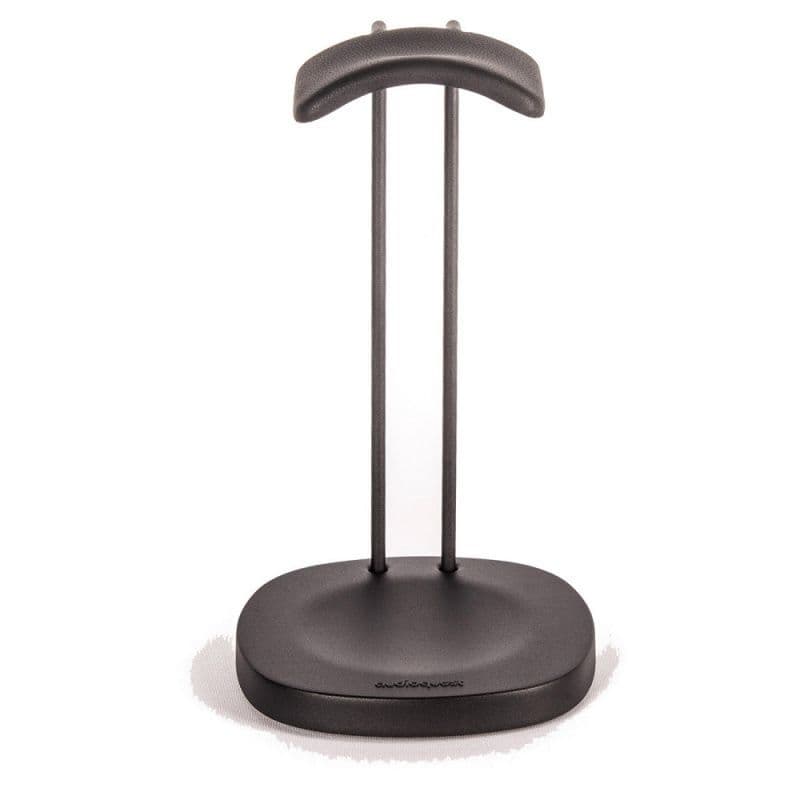 Many popular headphone stands are designed a way that causes the accompanying headphone to hang askew or forces the headband to open wide, thereby gradually misshaping the headpad and earpads, and placing undue tension on the headband. Over time, such headphone stands can actually harm their accompanying headphone, straining the important ergonomic elements that contribute to comfort and wearability.