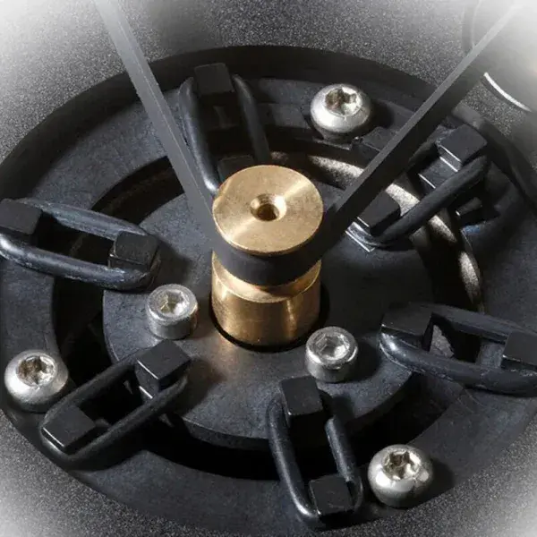 Several O-rings („IMS“) improve the motor suspension decoupled from the chassis, which is adopted in a modified form from the Reference Jubilee. Simultaneously, the new encoder forms the basis for even more features of future generations and expansion stages.