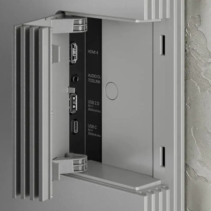 The Loewe Stellar sets standards not only in technology but also in design. With its elegant, minimalist frame and the choice of three stunning rear panel designs; concrete, lava and aluminium, it seamlessly blends into any living space, becoming the stylish centrepiece of your entertainment area. A true craft design TV from Loewe's in-house design and innovation studio. It is created with selected genuine materials sourced from Europe. All connections are well hidden, and all cables are well guided by integrated cable management and cable covers in the rear cabinet.