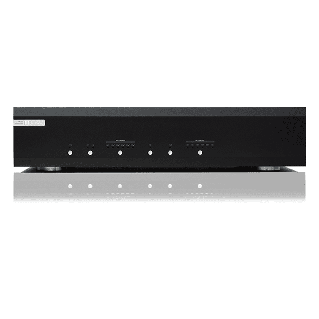 M3x ViNYL has a steel chassis and a thick, heavy aluminium front plate, which brings outstanding rigidity to the entire system and at the same time splendid isolation against outside interference. Key factor in keeping signal to noise ratios on the highest possible level is the huge distance between power transformer and amplifier section. The quality of the outside chassis finish, which is beyond beautiful, and the electronics inside - all wired by hand - is maintained by the highest manufacturing standards that Musical Fidelity now achieves by fully switching the production to be entirely Made in the EU!