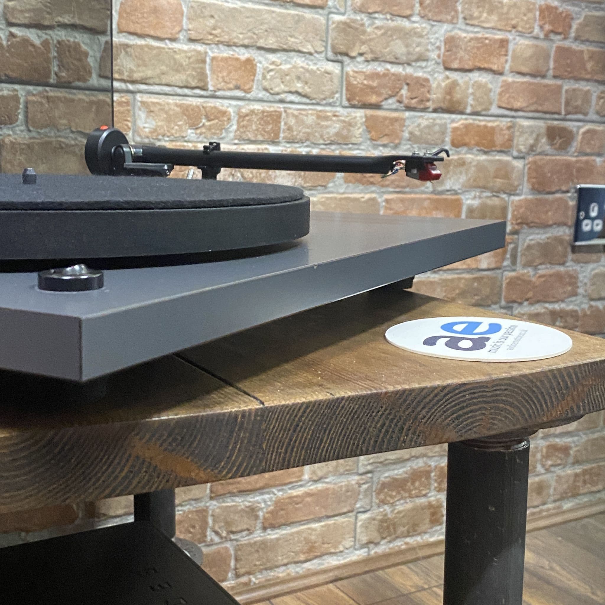 A high-torque, synchronous motor drives the 533's platter indirectly through a belt. The platter spindle is supported by a precision bearing located inside a solid brass housing that is bored out to within 20 microns tolerance to keep rumble at bay. While most platters are made of metal, the 533's is manufactured from medium-density fibreboard (MDF), whose high mass provides a flywheel action for smooth rotation and consistent speed. Acoustically the platter is almost dead, so it doesn't suffer the acoustic sensitivity at certain frequencies that is common with metal platters and that frequently colours sound as a result. The platter's thick felt mat damps the remaining acoustic energy further, and provides even support for the record throughout.