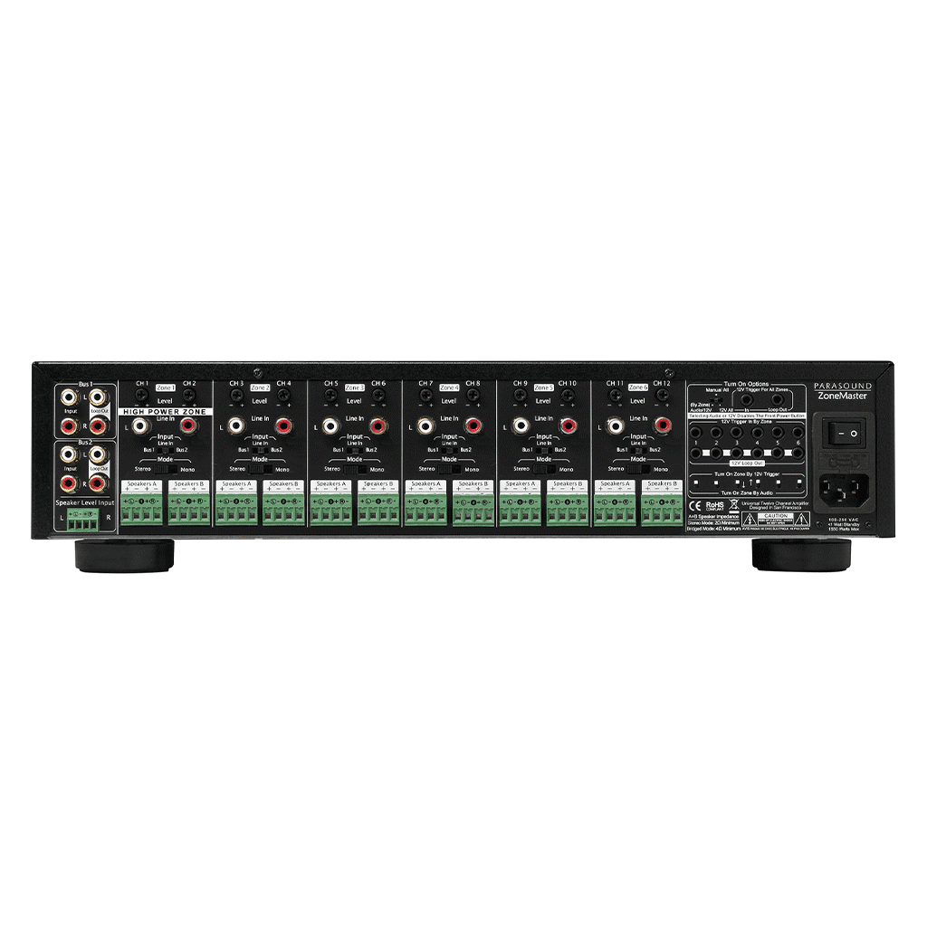• Parasound's new ZoneMaster models are very similar in their feature sets, differing mainly in size and number of channels. Looking for fewer channels? Try the ZoneMaster 2.