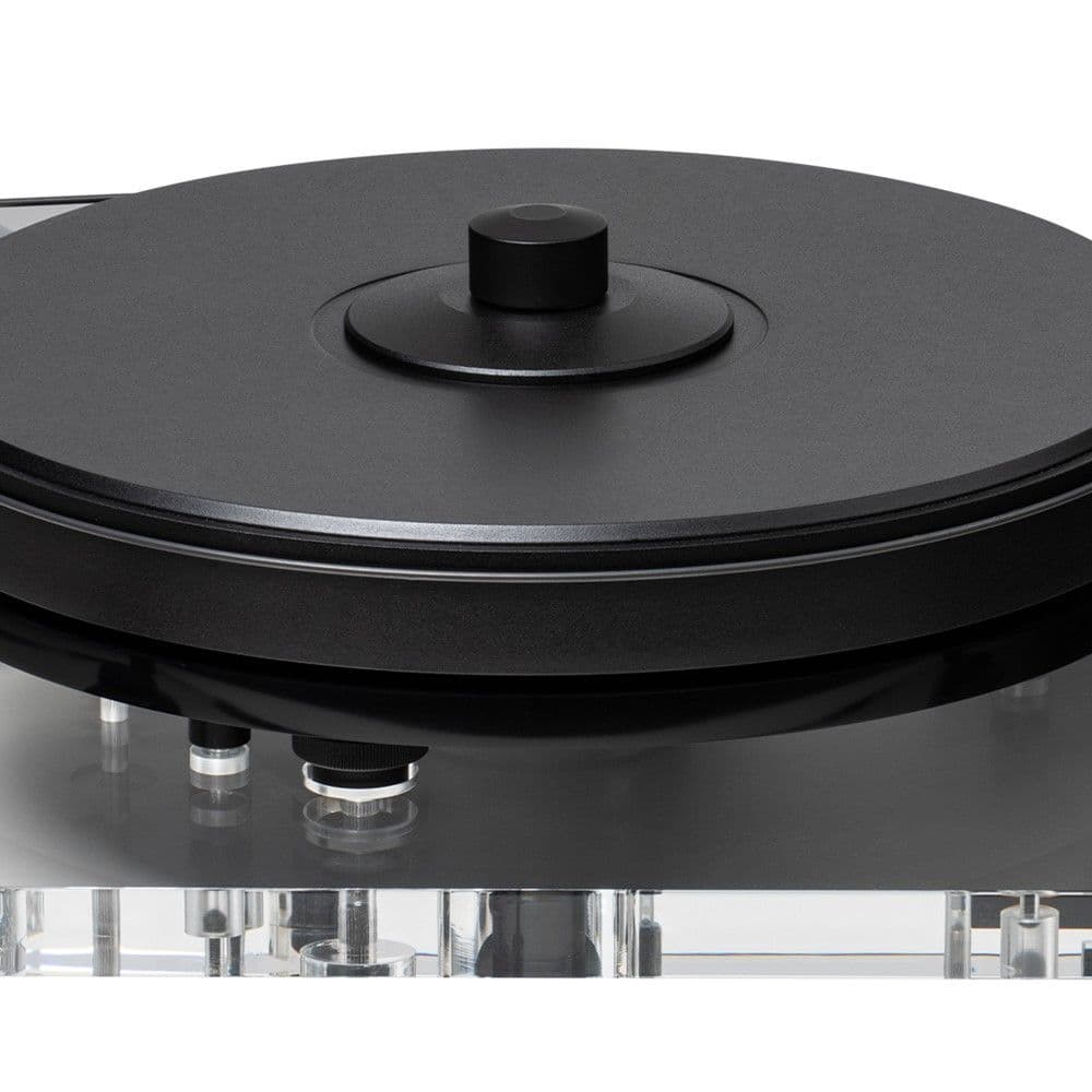 The drive system is completed by the precision-balanced vinyl sandwich main platter, which rides on an inverted main bearing featuring a ceramic ball for liquid-smooth rotation. The platters 4mm thick vinyl top-layer is the perfect interface for a playing record, and eliminates the need for any form of turntable mat, which can have a detrimental effect on the sound performance of high-end turntables. The platter is finished with a threaded spindle, to accommodate the supplied record clamp.