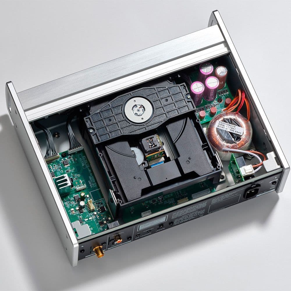 A semi-floating drive mount isolates vibrations from the spindle motor and actuator, while carefully selected rigid connections eliminate coloration caused by elastic materials. This balance of rigidity and flexibility ensures stable disc reading and precise audio reproduction.