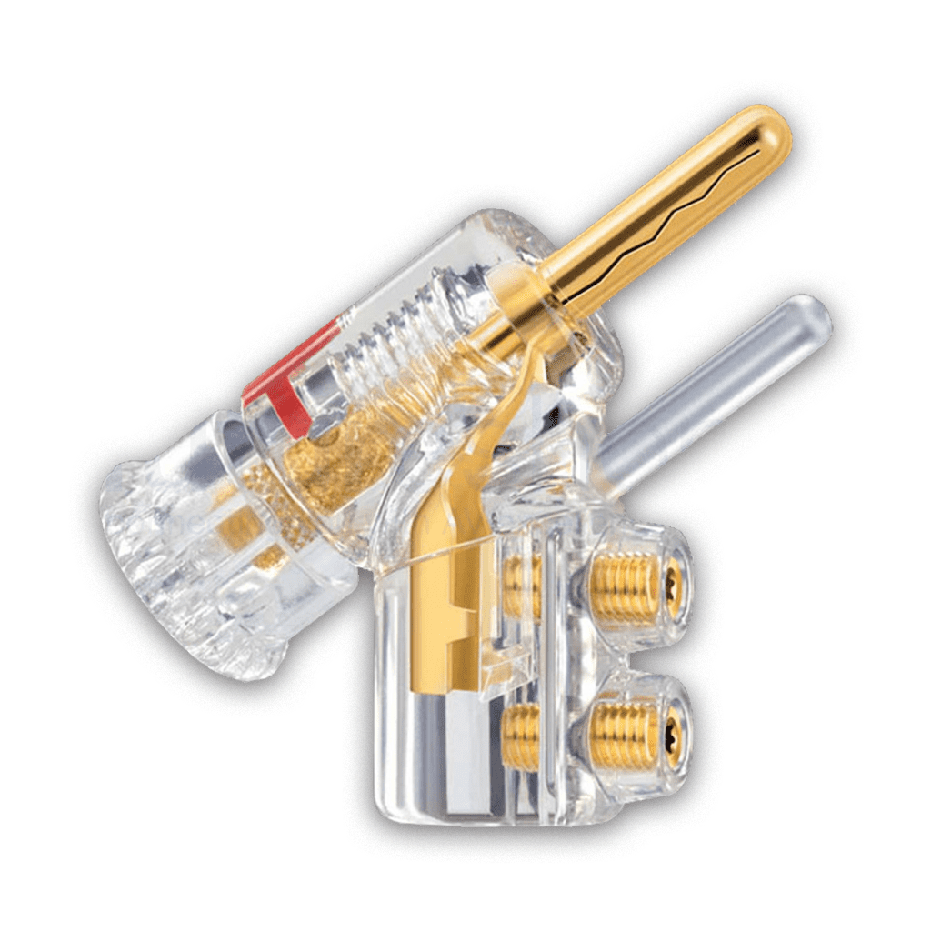 Delicately formed from pure copper - the signal line for the new nextgen banana plug WBT-0610 Cu. Directly gold plated in a nickel-free finish to prevent oxidation. This ensures high conductivity and no magnetic interferences. The contact pin is shaped so that its three segments expand as the spindle is twisted in, so that it can be secured in every terminal type. The resulting constantly high contact pressure guarantees permanently low transition resistances.